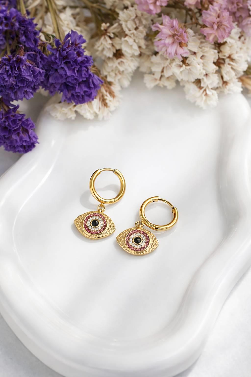 σκουλαρίκια κρεμαστά με ροζ ματάκι Υλικό: Ανοξείδωτο ατσάλι 304 |