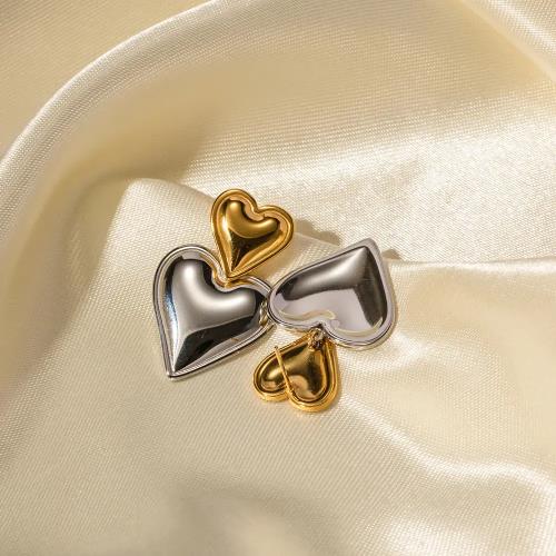 Χρυσά σκουλαρίκια κρεμαστά με ασημί καρδιά