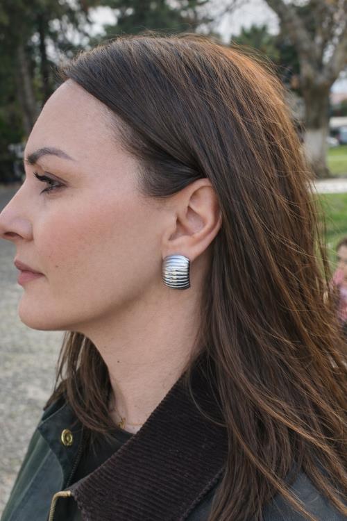 σκουλαρίκια σε σχήμα "C" με ραβδώσεις Υλικό: Eπιχρυσωμένο ατσάλι 18κ Διαστάσεις: 2.7cm μήκος + 1.8 cm πλάτος |