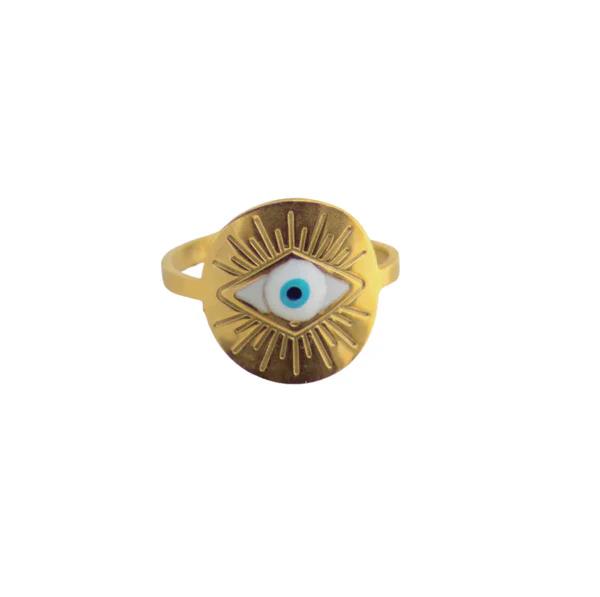 δαχτυλίδι με γαλάζιο μάτι σε στρογγυλό φόντο |