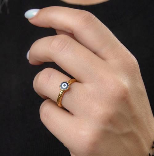 χρυσό με μπλέ στρογγυλό ματάκι Υλικό: Ανοξείδωτο Ατσάλι Μέγεθος: One size |