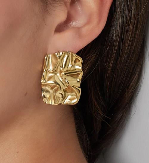Χρυσά σκουλαρίκια , τετράγωνο τσαλακωμένο