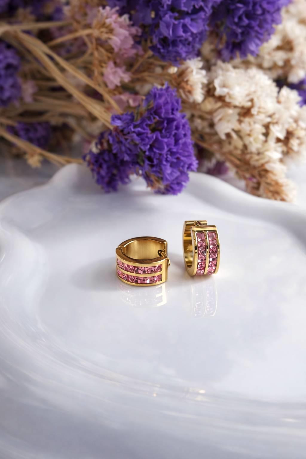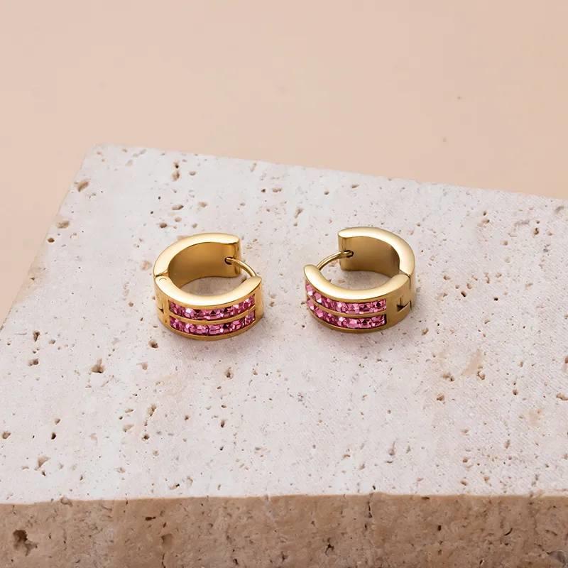σκουλαρίκια κρικάκια με ροζ ζιργκον Υλικό: Ανοξείδωτο ατσάλι 304 |