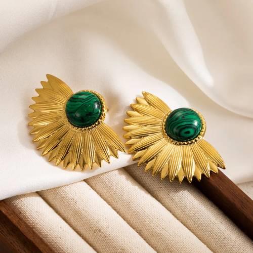 σκουλαρίκια βεντάλια με πράσινη πέτρα Υλικό: Ανοξείδωτο Ατσάλι |