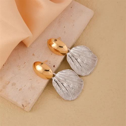 σκουλαρίκια σε σχήμα κοχυλιού με χρυσή λεπτομέρεια Υλικό: Ανοξείδωτο ατσάλι Διαστάσεις: 4.2+2.3 cm |