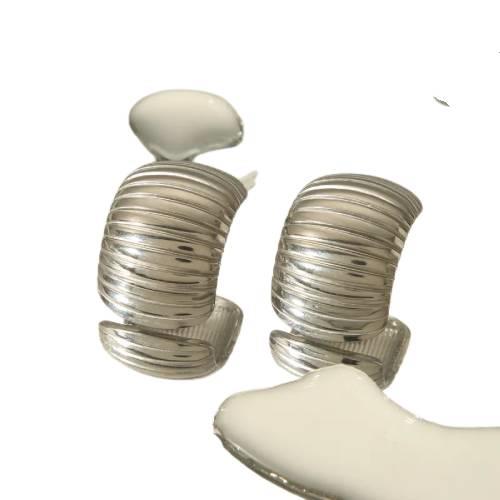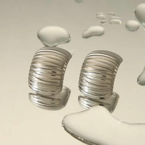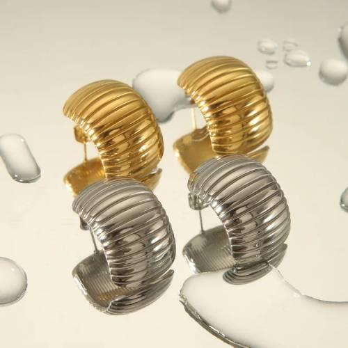 σκουλαρίκια σε σχήμα "C" με ραβδώσεις Υλικό: Eπιχρυσωμένο ατσάλι 18κ Διαστάσεις: 2.7cm μήκος + 1.8 cm πλάτος |